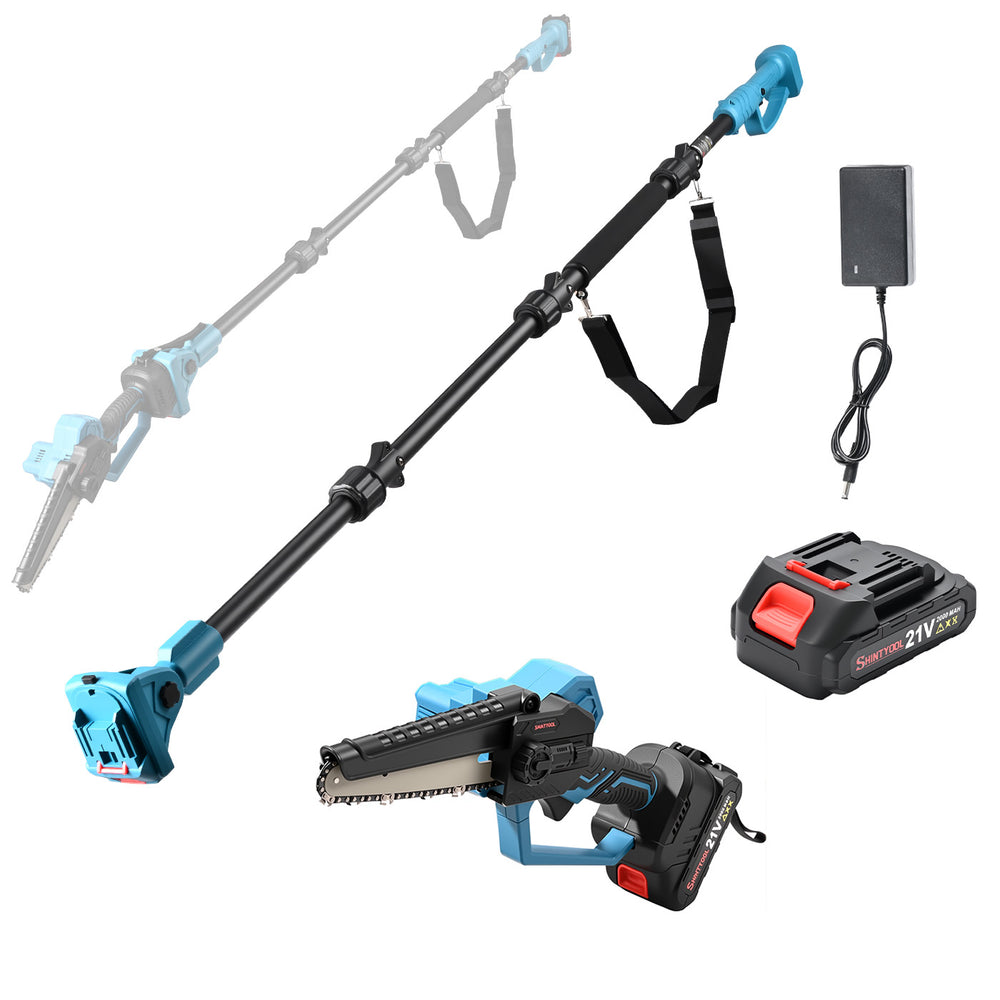 2-In-1 Pole Saws & Mini Chainsaw, Extension Pole Rotatable Pole 14ft Max Reach, With 2.0ah Batteries And Shoulder Strap, 21v Chainsaw For Tree Limb Branch Cutter By SHINTYOOL